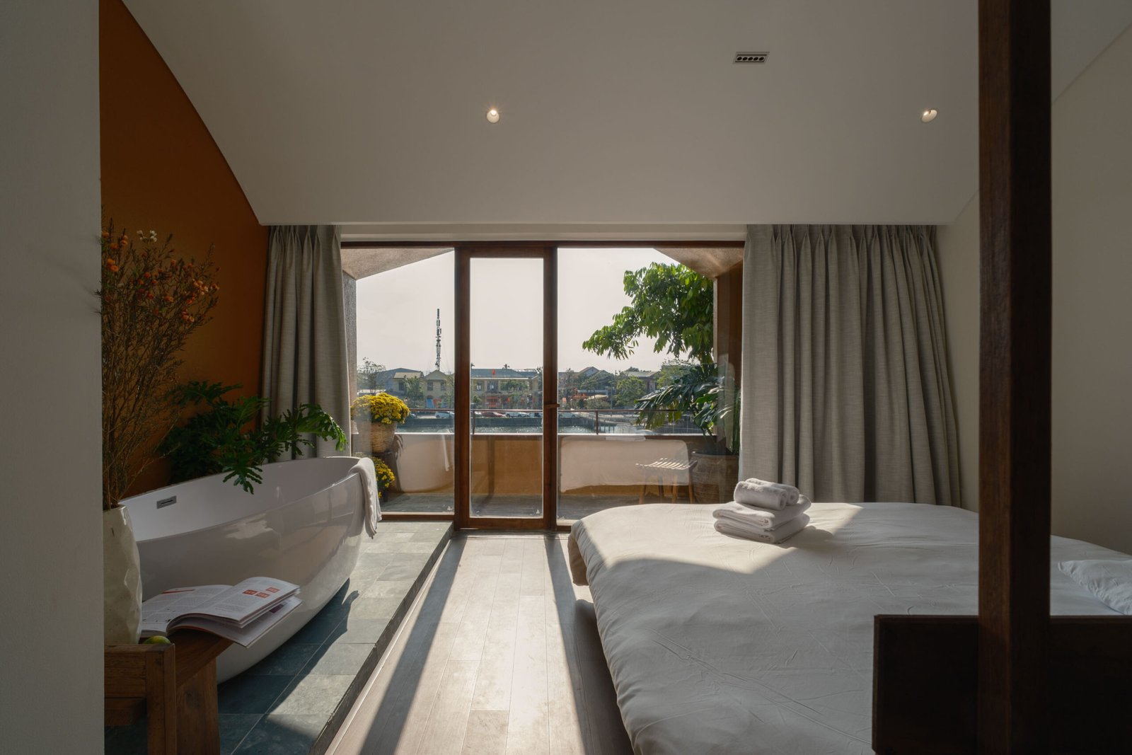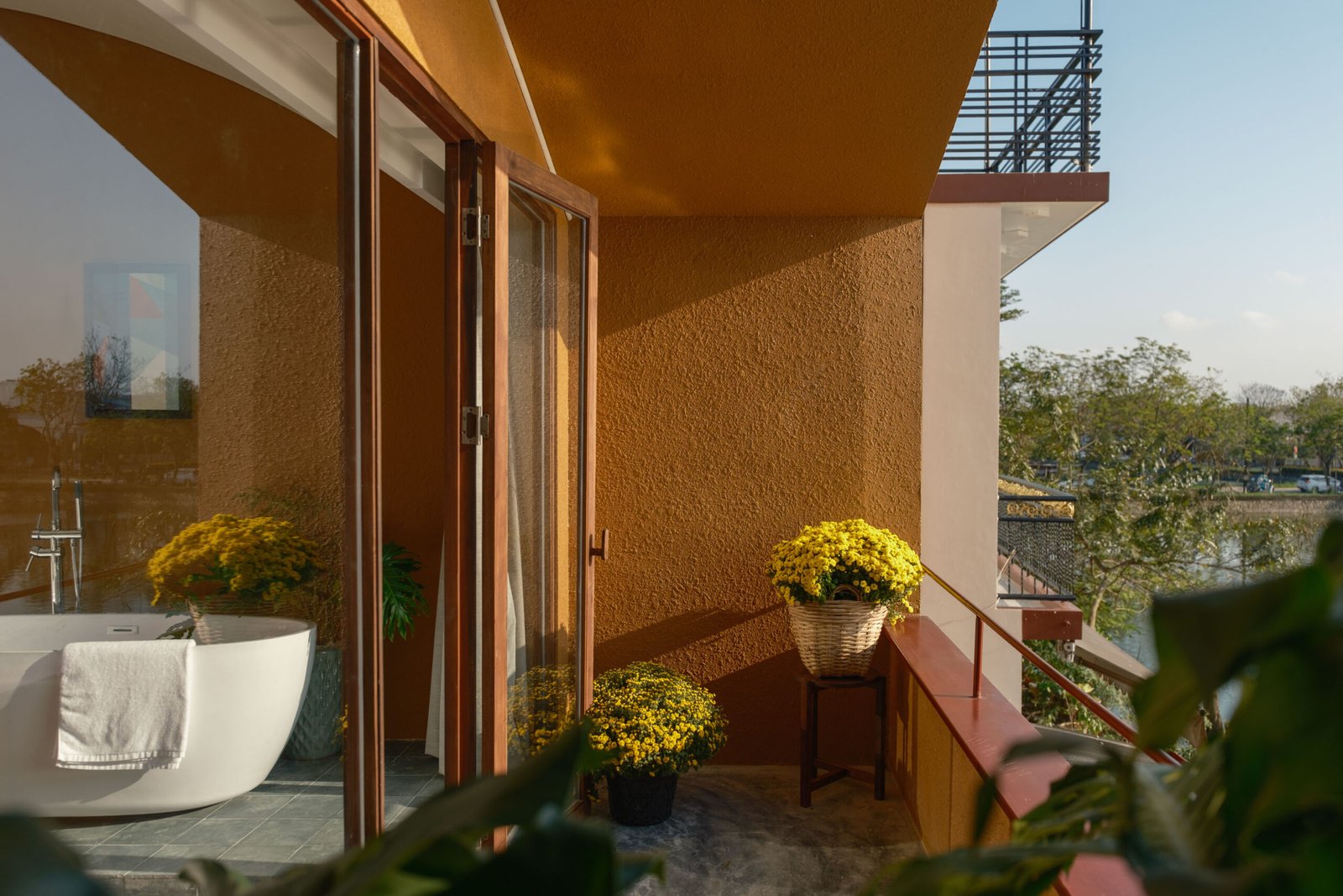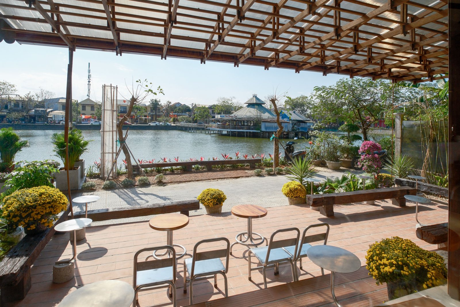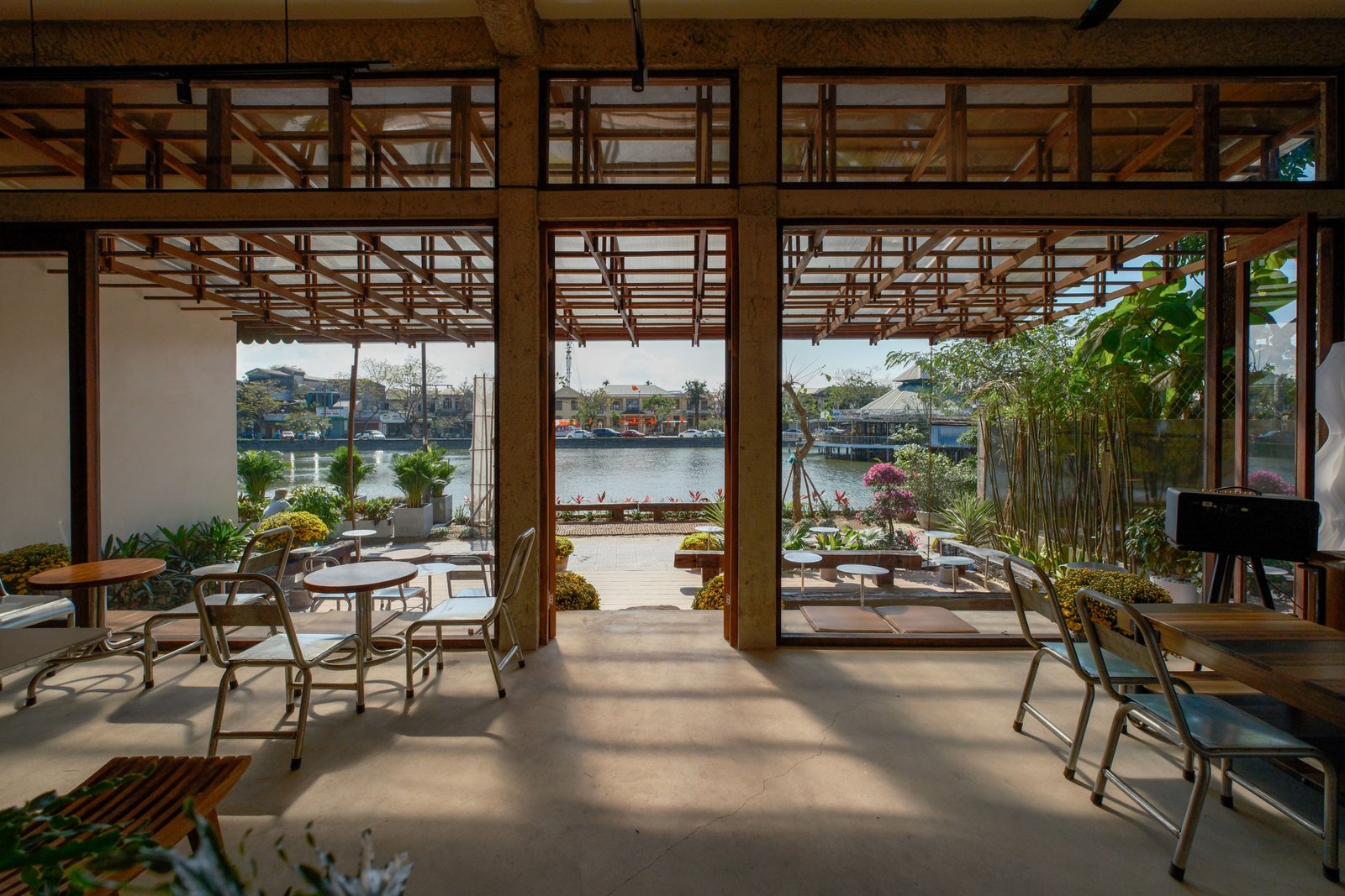 Không gian nội thất được chăm chút kỹ lưỡng, từ khu vực phòng ngủ thoáng mát, tiện nghi đến khu lounge cà phê ấm cúng, đều hướng đến sự thoải mái tối đa cho du khách – dù bạn đến đây để làm việc, nghỉ ngơi hay đơn giản tận hưởng không khí Huế chậm rãi.