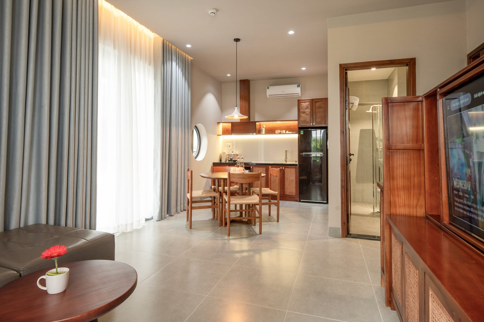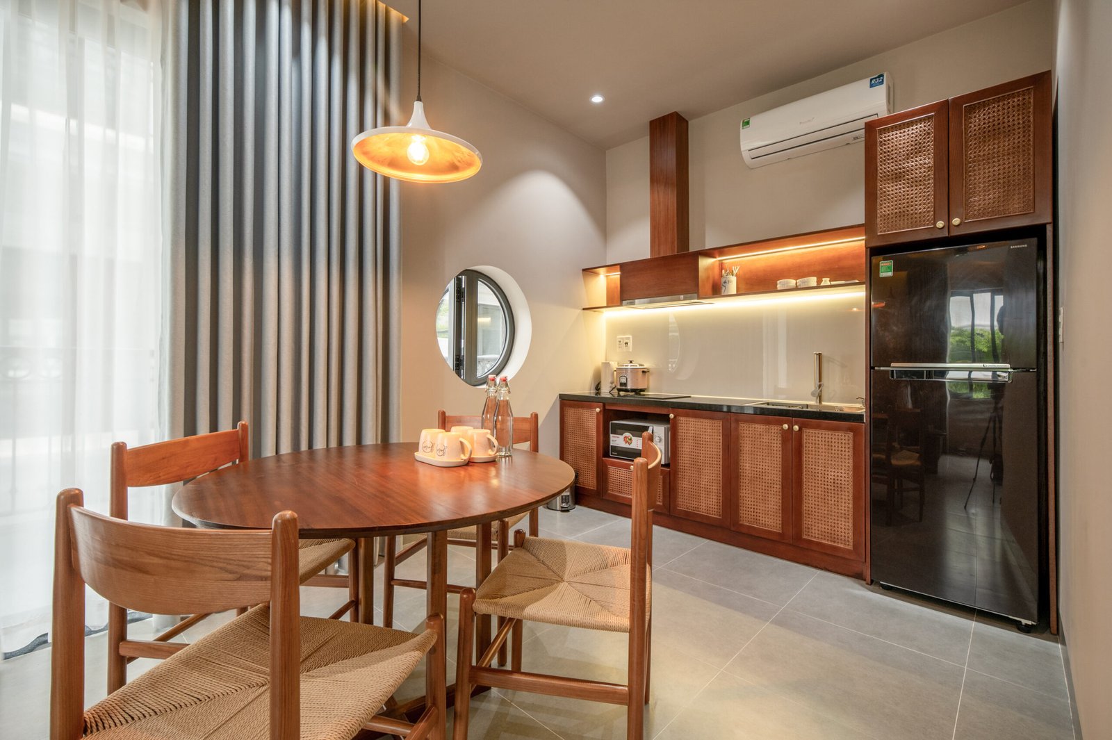 Với ánh sáng dễ chịu, vật dụng sạch đẹp, thiết kế hiện đại nhưng vẫn thoải mái. Không gian phòng khách và bếp được kết hợp khá hài hòa nếu bạn đi nhóm bạn hoặc gia đình, có thể sinh hoạt chung thoải mái.