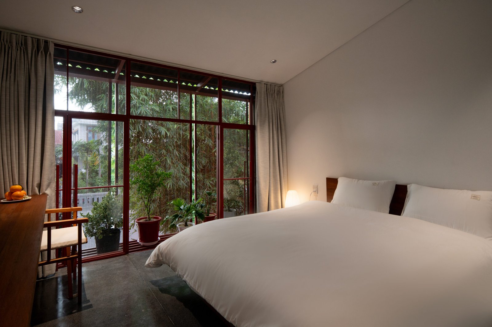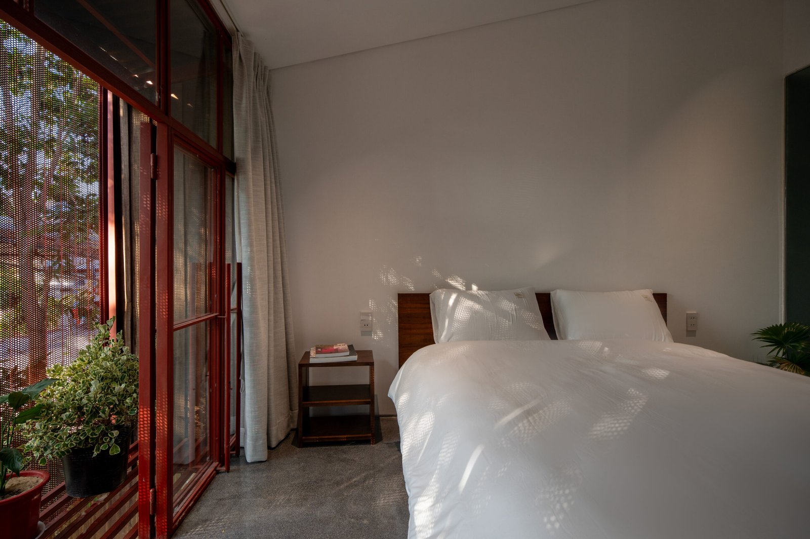 Nhìn ra sân trước, nơi từng chậu cây nhỏ được nâng niu mỗi ngày, căn phòng là điểm dừng chân cho những ai trân trọng vẻ đẹp bé nhỏ của sự sống xanh. Một chốn để bạn mỉm cười trước những mầm non vừa nhú, và thấy lòng mình cũng dịu dàng theo từng chiếc lá rung rinh.